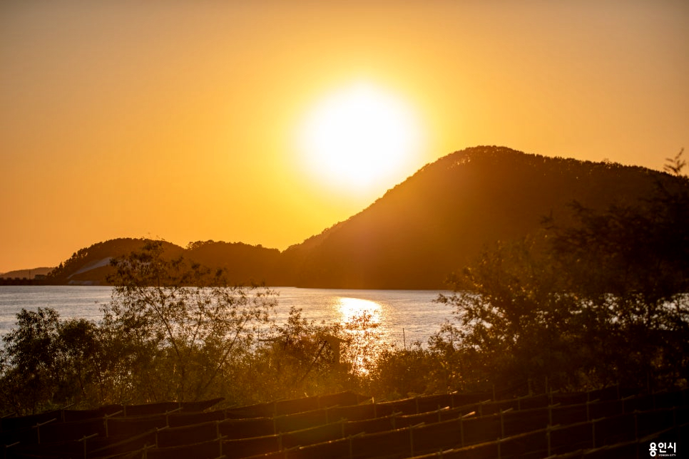 용인 이동저수지는 경기도에서 가장 큰 저수지 중 하나로, 웅장한 자연경관과 함께 저수지를 따라 펼쳐진 산과 물의 조화로운 풍경을 감상할 수 있습니다. 저녁 무렵 저수지에서 마주하는 주홍빛 하늘과 반사되는 저수지의 모습은 일몰을 더욱 황홀하게 만듭니다. 이곳은 사진작가들에게도 인기 있는 장소로, 드라이브를 즐기면서 노을을 감상할 수 있는 여러 포인트가 있어 다양한 각도에서 일몰을 즐길 수 있습니다.