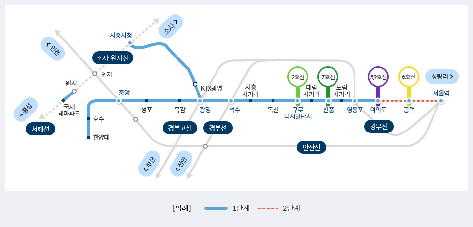 - 광명역: KTX 경부선과 환승 가능