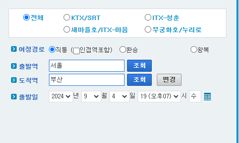 - 입석+좌석 예매 대기 활용: 예매 창에서 '입석+좌석 예매 대기' 상태일 경우, '중간연결역 변경'을 통해 중간역에서 내리는 승객의 자리를 검색할 수 있습니다. 이를 통해 출발은 입석이지만 중간역부터는 좌석에 앉아 목적지까지 편하게 갈 수 있습니다.